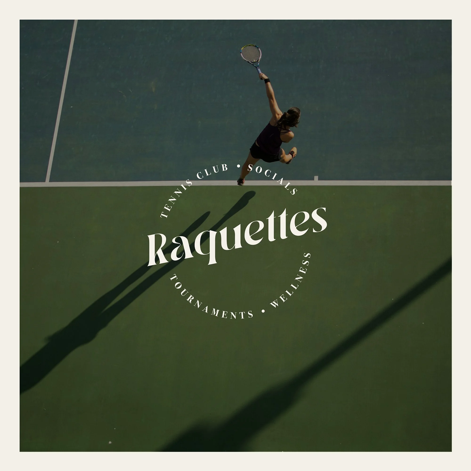 Raquettes are a Tennis and Social Club that I created as a personal branding project. The style is high-end and elegant, with a lot of style. Think Palm Springs Country Club with a young, fresh twist.